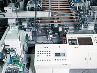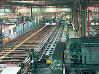 這個工序是通過控制室的計算機操控的。鋁合金型材經(jīng)過脫脂、蝕刻、電解著色、涂飾的過程,被自動搬運到液槽中。最后是烤漆和干燥的過程。